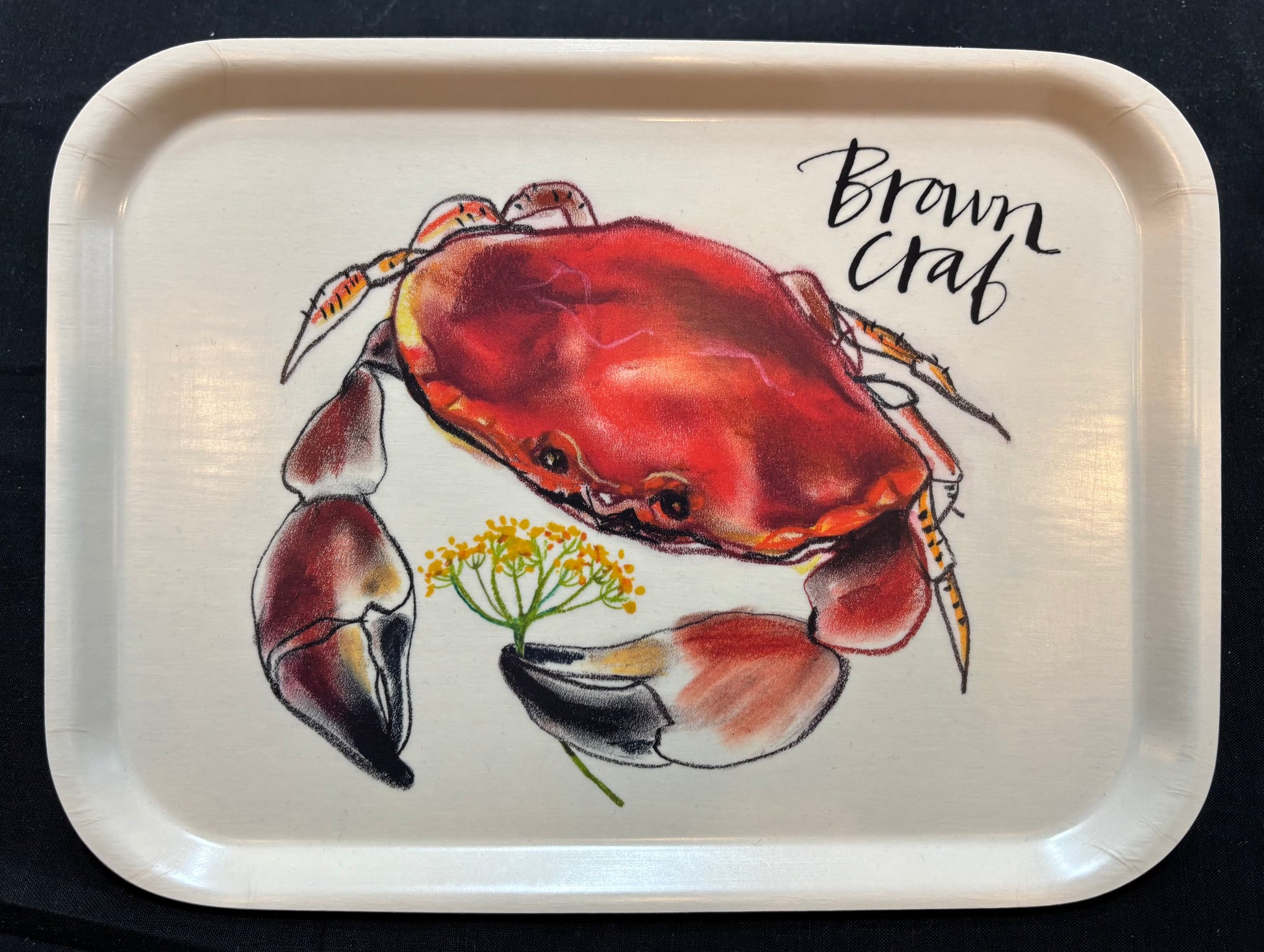 Liten bricka med krabbmotiv i torrpastell